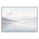 This wedding place card features a serene landscape with soft, muted tones of light blue and gray, creating an ethereal atmosphere. The minimalist composition includes layered mountain silhouettes and calm water reflecting the sky, evoking tranquility and simplicity. Delicate script typography adds elegance without overpowering the natural elements, making it perfect for setting a peaceful tone at your special event.