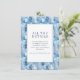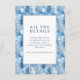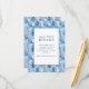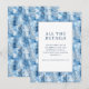 This wedding enclosure card features a serene winter theme with stylized blue trees creating a wintery forest backdrop. The central white square, framed by a thin blue line, highlights the elegant serif typography that guides guests to further details online. The color palette of various blues evokes a calm and inviting atmosphere, perfect for setting the tone for a sophisticated event. The minimalist design focuses on clean lines and flat colors, making it both modern and timeless. Ideal for weddings, this card combines functionality with aesthetic appeal, ensuring all important information is presented in an attractive manner.
