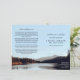 Ruhiges und wunderschönes Beerdigungsprogramm mit einem Foto eines Bergsees am unangenehmen Morgen im Wald. Fügen Sie ein Foto Ihrer geliebten Person zusammen mit ihrem Namen und Jahren leben und obituary. Fügen Sie die Reihenfolge der Dienste, Zuwendungen und Bestätigungen hinzu.