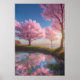 Dieses digitale Kunstwerk zeigt die ruhige Schönheit der Sakurabäume, die ruhig am Ufer eines ruhigen Sees wachsen. Die zarten rosa Blüten der Kirschbäume schaffen eine ruhige und bezaubernde Atmosphäre. Das Kunstwerk lädt den Betrachter ein, die Ruhe der Szene zu genießen, sich die sanfte Brise vorzustellen, die durch die Blüten schlummert und die Sakura auf dem ruhigen Wasser des Sees reflektiert.