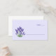 This elegant place card features a beautifully illustrated lavender design, showcasing rich purple flowers and green stems on a soft lavender background. The minimalist layout includes ample negative space, creating a serene and balanced feel perfect for formal events. A clean, sans-serif font is used for the customizable "TABLE" placeholder, adding to the modern aesthetic. Ideal for weddings or sophisticated gatherings, this card combines natural elegance with a calming mood, making it a charming addition to any table setting.