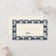 This elegant wedding place card features a nautical theme with a repeating pattern of stylized seashells in deep navy blue set against a cream background. The shells are arranged symmetrically, creating a balanced and sophisticated border around the central blank area, which is perfect for customization. The design includes an elegant cursive script for "table," adding a touch of seaside charm to your event. Ideal for coastal or maritime-themed weddings, this card exudes calmness and refinement, making it a beautiful addition to any celebration by the sea.
