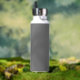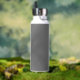 A textured gray fabric surface with a subtle crisscross pattern, conveying a soft and neutral tone. The weave suggests a linen or cotton material.