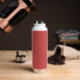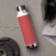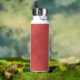 A textured red background with subtle vertical and horizontal lines, resembling a woven fabric. The pattern adds depth and a warm, inviting tone.
