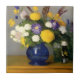 Stille Wasserfarben Botanische Kunst - Entspannen Sie in dieser stilvollen Aquarellvase aus Blume. Weiche Blues, Gelbtöne und Purpur schaffen ein beruhigendes Ambiente. Ideal für Wandkunst.