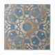 Diese Keramik ist eine wunderschöne Mischung aus traditioneller Kunst und zeitgenössischer Ästhetik. Die Grundfarbe ist eine beruhigende Blautöne, die eine ruhige Kulisse für das aufwändige Design bietet, das es schmückt. Weiße geometrische Linien kreuzen die Kachel und bilden ein komplexes Gitter aus Diamantformen und anderen Mustern. Diese geometrische Eleganz wird durch zarte beige Blumenmotive gemildert, die im Gitter verwoben sind. Die Blumenelemente verleihen dem strukturierten Design eine Bio Touch und schaffen ein harmonisches Zusammenspiel von Geometrie und Natur. Das Design ist symmetrisch, was durch ein Gefühl von Ausgeglichenheit und Harmonie zur visuellen Attraktivität der Kachel beiträgt. Diese künstlerische Mischung aus zeitgenössischem und traditionellem Stil macht die Kachel nicht nur zu einem funktionalen Stück, sondern zu einem Kunstwerk, das jeden Raum in einen ästhetischen Hafen verwandeln kann. Zusammenfassend lässt sich sagen, dass diese Keramik-Kachel ein Beweis für die Schönheit ist, die erreicht werden kann, wenn geometrische Präzision mit der Weichheit der Blumenmotive kombiniert wird, alles Set vor einem beruhigenden blauen Hintergrund. Es ist ein Stück, das Bände über das Potenzial der Keramik im Innendesign spricht.