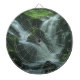 Dieses Design zeigt ein Bild von schäumendem Wasser, das einen Wasserfall neben mit grünen Moos bedeckten Felsen hinunterführt. Es ist eine schöne und beruhigende Szene, die Sie an die Schönheiten der Natur erinnert.
