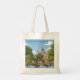 An illustration from a photograph of boats on the river Cam in Cambridge in England printed on both sides of a tote bag.