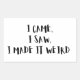 Stick it on your laptop, water bottle, toolbox, or forehead — wherever weirdness is welcome.