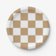 Papierplatte mit Kamelbraun und weißem karierten Muster. Ideal für jede Ansammlung.