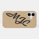 This camel (beige) phone case features a minimalist, signature-style monogram placed diagonally across the cover. The initials are fully customizable and designed to flow naturally around the camera lens. Available in multiple color options for a clean, modern, and personal look.