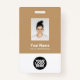 Easily personalize this Camel Custom Employee Name Badge with Photo, Scan Bar Code and business logo. A simple business design in trendy Camel and white standard colors fully customizable in front and back sizes, sans-serif basic and modern fonts and a professional and clear look. Avaiable with lanyard, metal clip or with retractable. No minimum order.