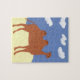 Fun Puzzle mit Whimsical Cartoon Kunst eines zwei Höckerkamerels, der über Sanddünen in der Wüste unter einem blauen Himmel spaziert, der von Wolken gesprenkelt ist. Mit Baupapier erstellt und in Fotoshop von KLeighE von Hinterland Harmonys Whimsical Cartoon Art ™ manipuliert
