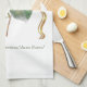 Elegant botanical illustration of Camellia japonica 'Alba Plena', the classic white camellia, featuring pristine white blooms with golden stamens, lush dark green leaves, and gold ribbon accents — with its Latin name in refined italic script.
