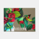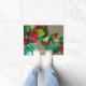Eine blumengeschmückte künstlerische Begrüßungsmatte mit Camellia-Blume, originelle Aquarellbilder der Künstlerin Sacha Grossel, mit einem erdigen, individuell gestaltbaren Hintergrund und Begrüßungszeichen. Eine heimelige, süße Begrüßungstüre, perfekt für Ihr Haus.
