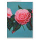Camellia Japonica Blume Gemälde auf einem himmelblauen Hintergrund.