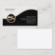 Die Visitenkarte der Kameratechniker weist schwarz-weiße Segmente auf, die durch einen schweren goldenen Streifen getrennt sind. Eine elegante Goldkamera-Ikone liegt auf der unteren links Seite des Designs, die sich in der Regel für Unternehmen oder Berufsgruppen im Bereich Fotografie, Kamera, visuelle, Unterhaltung, digitale Bildgebung, kreative Kunstthemen eignet.