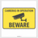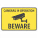 This bold, yellow and black sign clearly warns of active camera surveillance, deterring unauthorized activity and enhancing property security. Ideal for homes, businesses, and public spaces, ensuring visible security presence.