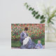 Eine Kunstpostkarte mit dem Gemälde Camille Monet und ein Kind im Artist's Garden in Argenteuil (1875) von Claude Monet (1840-1926). Ein Portrait von Monets Ehefrau und Kind vor einem Hintergrund von schönen roten und rosa Blume in seinem eigenen Garten in Frankreich.