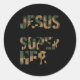 Camo Jesus Is My Superhero Toddler Boys Camouflage Runder Aufkleber