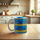 Camomile Tea Vibrant Yellow & Blue Celtic Stripes Zweifarbige Tasse