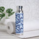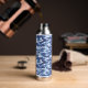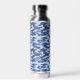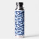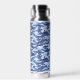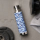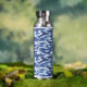Diese isolierte Wasserflasche ist in Silber mit einem blauen Aufdruck der militärischen Camouflage abgebildet. Passen Sie dieses Objekt an oder kaufen Sie, wie es ist.