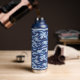 Diese isolierte Wasserflasche wird in der Marine mit einem blauen Aufdruck der militärischen Camouflage gezeigt. 32 oz. Passen Sie dieses Objekt an oder kaufen Sie, wie es ist.