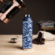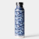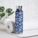 Diese isolierte Wasserflasche wird in der Marine mit einem blauen Aufdruck der militärischen Camouflage gezeigt. Passen Sie dieses Objekt an oder kaufen Sie, wie es ist.