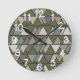 Diese Wanduhr hat ein modernes Design, das sich überlappende Dreiecke in Camouflage--Farben horizontal ausrichtet.