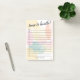 Personalisierte Noten mit einer Camouflage inspiriert Muster mit Aquarellmuscheln in Rosa, Korallen, Gelb und Grün und eine praktische Liste zu tun. Die Liste 'to do' der Post-its hat Checkboxen, mit denen Sie leicht erkennen können, welche Aufgaben oder Aufgaben Sie ausgeführt haben. Anpassen durch Hinzufügen Ihres Namens. Zeit zum Stöbern!