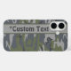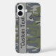 Camouflage Muster Smartphone Gehäuse in verblasstem Grün und Grau mit bearbeitbarem Textfeld für eine einfache Anpassung.