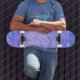Camouflage Pastel Blue Abstrakt Pattern Skateboard. Personalisieren Sie diese Vorlage mit Ihrer Kunst oder Ihrem Foto und passen Sie sie nach Ihren Wünschen an. Das Produkt zeichnet sich durch ein blaues und lila Tarnmuster aus.