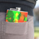 Farbenfrohe Camouflage Vinyl Wrapped Flask. Entworfen mit hellen Farben wie Rot, Grün und Gelb.