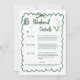 Feiern Sie die zukünftige Braut mit diesem rustikalen Camp-Junggeselinnen-Abschied mit einem stilvollen, handgezeichnet, scharfen, grünen Rahmen und schicken Bogendetails. Die Vorderseite Set den Ton mit minimalistischem, modernem Design, während die Rückseite mit einer passenden Routenplanung versehen ist, um die Gäste behalten, die für die Wochenendfeste organisiert werden. Diese Einladung eignet sich ideal für Bräute, die einen Hüttenurlaub planen, einen Gletscherausflug unternehmen oder einen Waldurlaub planen. Sie verbindet modernen rustikalen Charme mit praktischen Details - alles in einer wunderschön gestalteten Karte.