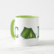 Tasse zeigt eine originelle Abbildung eines grünen Zeltes, das das A im Wort CAMP bildet. Ideal für Wander-, Camping- oder Outdoor-Liebhaber!