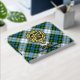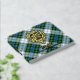 Campbell Wappen Abzeichen umgeben von einem Gurt und Schnallen über das Kleid Tartan Hintergrund. Benutzerdefinierter Vorder-, Rücken- und Rückentext.