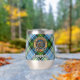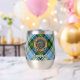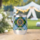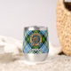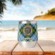 Campbell Wappen Abzeichen umgeben von einem Gurt und Schnallen über das Kleid Tartan Hintergrund. Benutzerdefinierter Text auf beiden Seiten.