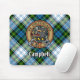 Campbell Wappen Abzeichen umgeben von einem Gurt und Schnallen über das Kleid Tartan Hintergrund. Eigener Text.