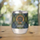 Campbell Wappen Abzeichen umgeben von einem Gurt und Schnalle über Tartan Hintergrund. Benutzerdefinierter Text auf beiden Seiten.
