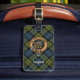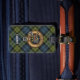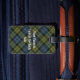 Campbell Wappen Abzeichen umgeben von einem Gurt und Schnalle über Tartan Hintergrund. Benutzerdefinierter Text auf beiden Seiten.