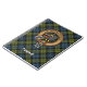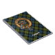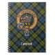 Campbell Wappen Abzeichen umgeben von einem Gurt und Schnalle über Tartan Hintergrund. Benutzerdefinierter Text.