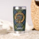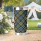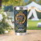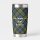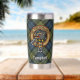 Campbell Wappen Abzeichen umgeben von einem Gurt und Schnalle über Tartan Hintergrund. Benutzerdefinierter Text auf beiden Seiten.