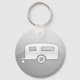 Ein Camper Trailer Symbol auf einem silbernen Hintergrund. Dieses Design wirkt auf diesem Schlüsselanhänger wirklich effektiv