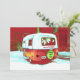 Retro Vintagen Camper Weihnachts Hippie bohemian grünen roten Urlaub Wohnung Karte. Fügen Sie Ihre eigene Nachricht hinzu. "Happy New Year" Phrase und Jahr. Travel Trailer Blumenvorhänge im Stil von 1960 auf der Rückseite des Fensters. Einzigartiges Design. Individualisieren Sie Text auf der Rückseite des Anhängers, falls gewünscht. Bildrecht Marg Seregelyi Fotografie.