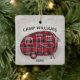 Dieses rustikale Weihnachtsschmuck verfügt über einen karierten roten und schwarzen Büffel-Camper mit dem Namen des Familienlagers und dem aktuellen Jahr unten für Sie nach Ihren Wünschen. Entworfen von weltberühmten Künstler ©Tim Coffey.