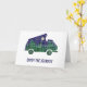 Senden Sie ein paar Begrüßungen für eine Reise an jemanden, der auf einem Camping unterwegs ist, oder erstellen Sie eine personalisierte Geburtstagskarte. Diese gefaltete Grußkarte ist bereit, mit Ihrer eigenen Botschaft an der Vorderseite und im Inneren personalisiert zu sein und zeigt einen Camper-Fan mit einem Popupzelt auf dem Dach und ist illustriert, wie eine mondbeleuchtete Nacht im Wald auszusehen, mit Vollmond in einem sternvollen Indigohimmel, der auf einem Haufen immergrüner Bäume strahlt.