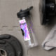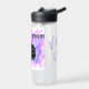 Camper van Wasser Flasche mit van life Slogan. Farbenfrohe Magenta und blaues Muster. Wohnmobil im T3-Stil. Ideal für Campinggäste