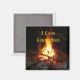 Foto eines Lagerfeuers aus Stöcken, umgeben von Felsen, das gegen dunkle Nacht brennt. Anpassbare Texte lauten "I Liebe Campfire".