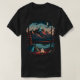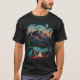 Ein cooles Retro-Design für Camping-Liebhaber mit einer Berglandschaft am See bei Nacht mit Zelt.