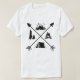 Ein cooles Design für Abenteurer mit Berg, Lagerfeuer, Bäumen und Zelt mit zwei Pfeilen.